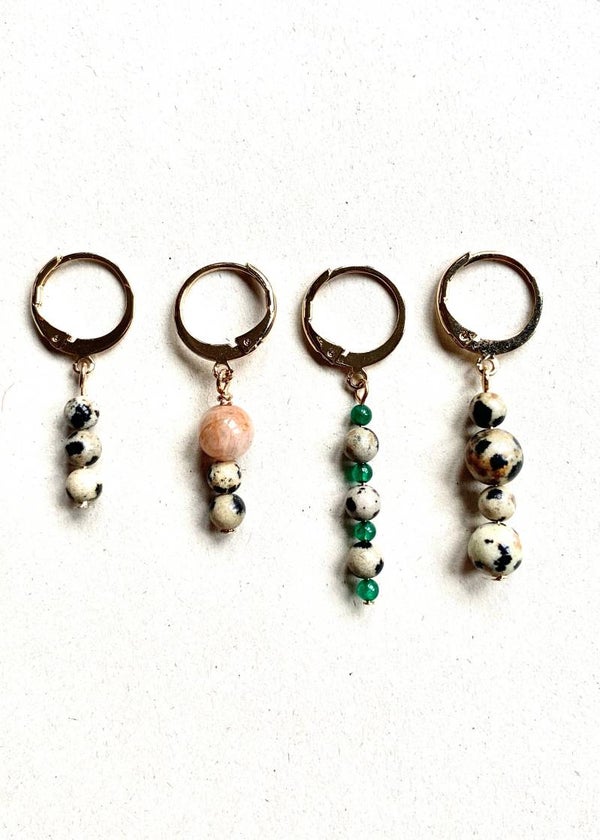Fijn oorbelletje van drie Dalmatier Jaspis kraaltjes. Prima om te combineren. Per stuk