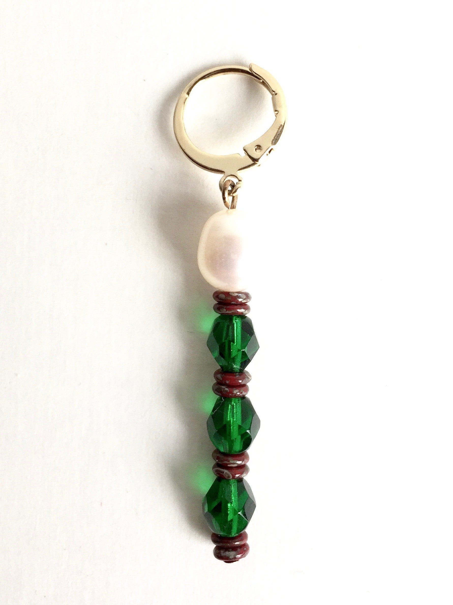 materiaal: parel, goldplated findings en Czech glassbeads