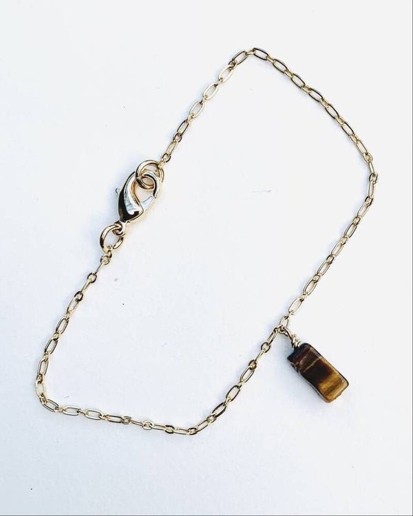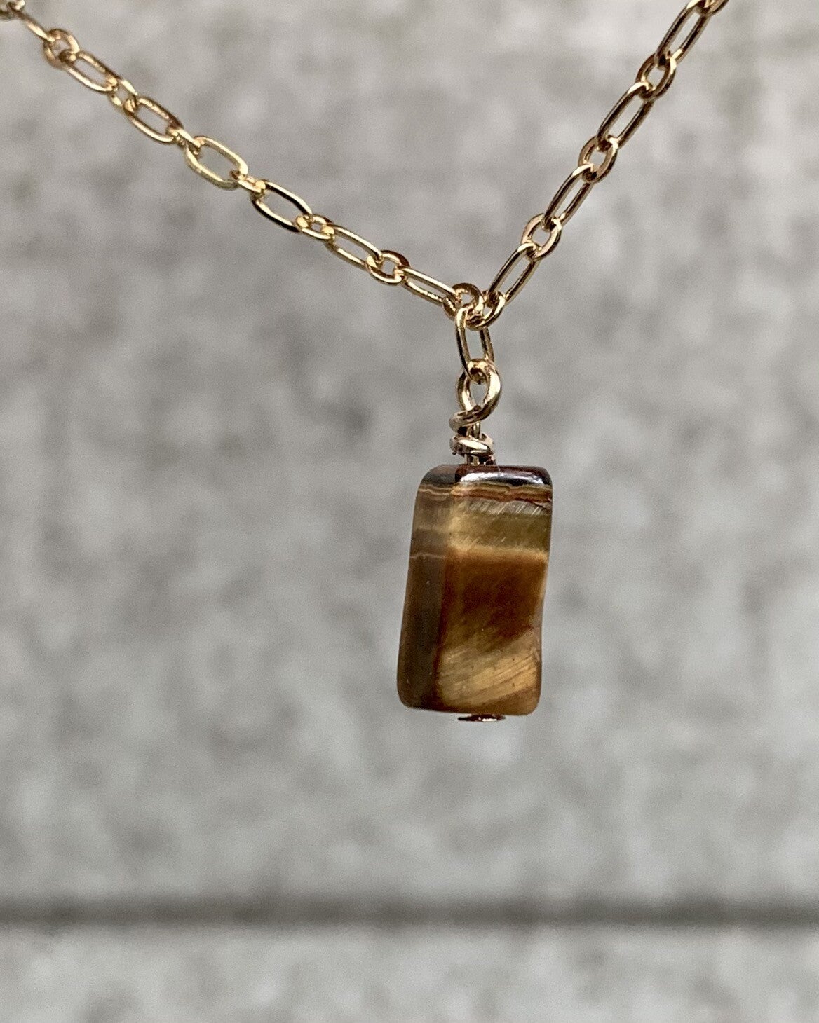 materiaal: goldplated findings, edelsteen Gele Tijgeroog