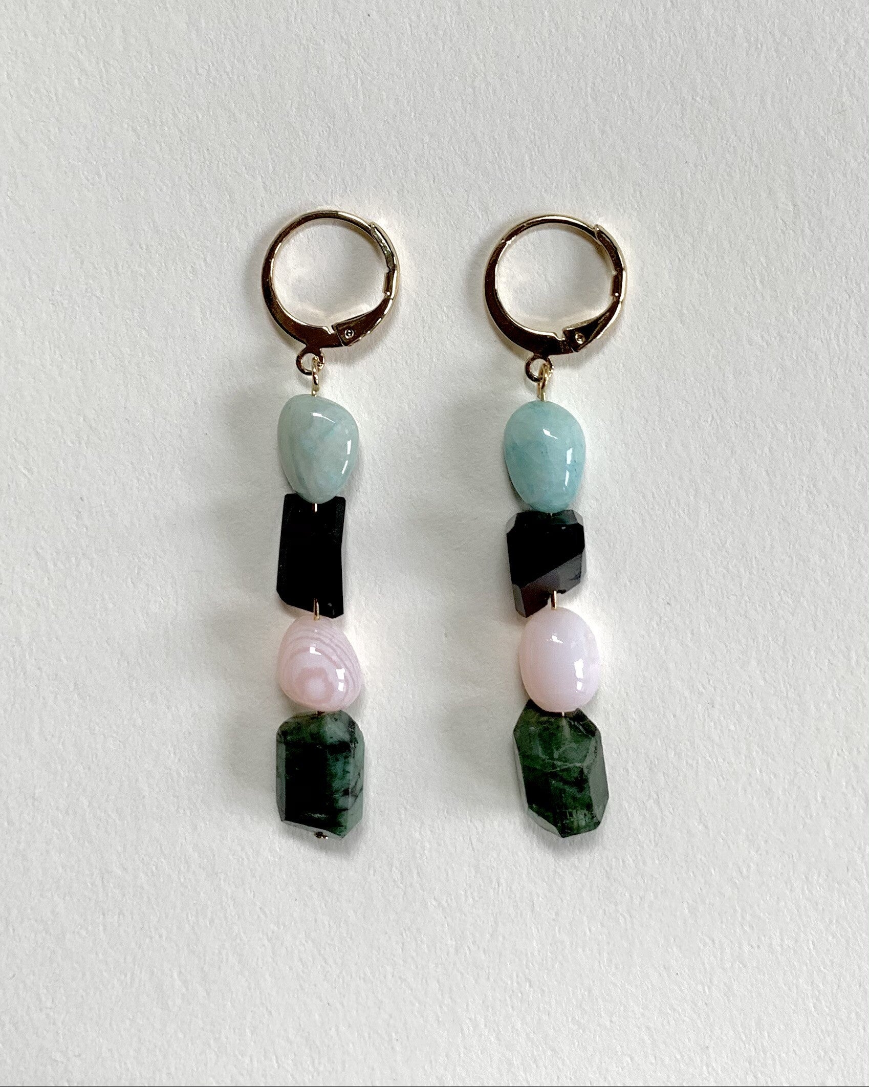 materiaal: goldplated findings, Smaragd, Roze Opaal, Black Onyx en Amazoniet