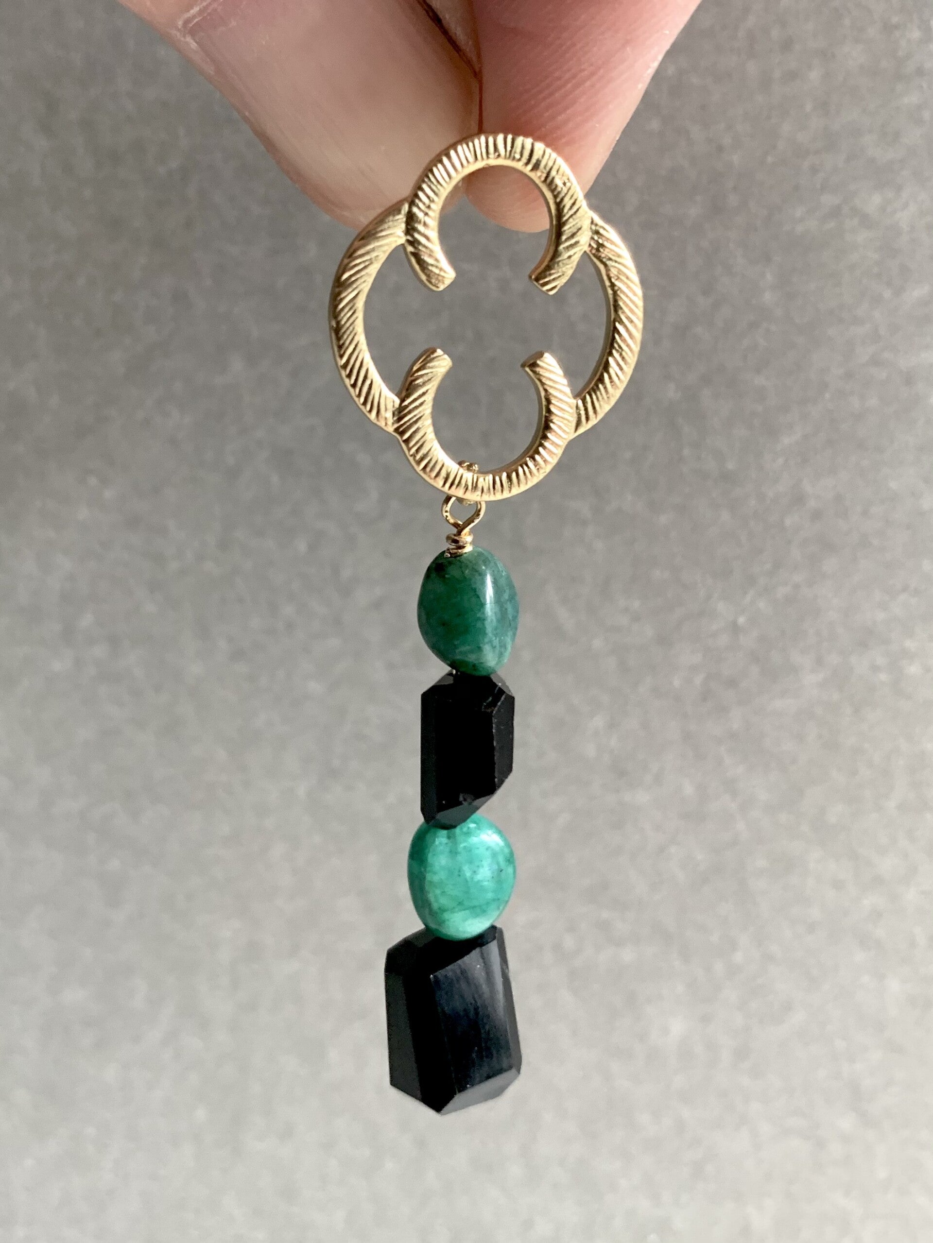 materiaal: Goldplated findings, Black Onyx en Amazoniet