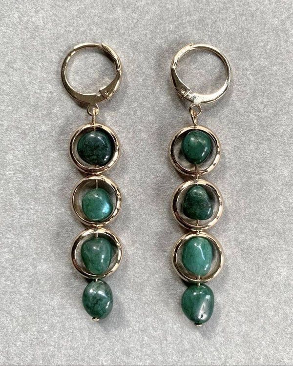 Super klassiek Sixties zijn deze mooie oorbellen waarmee ik mij op een jacht in Cannes waan. Goldplated ronde lijstjes met daartussen groene blauwglanzende Labradorite parels. Ik ben verliefd : )