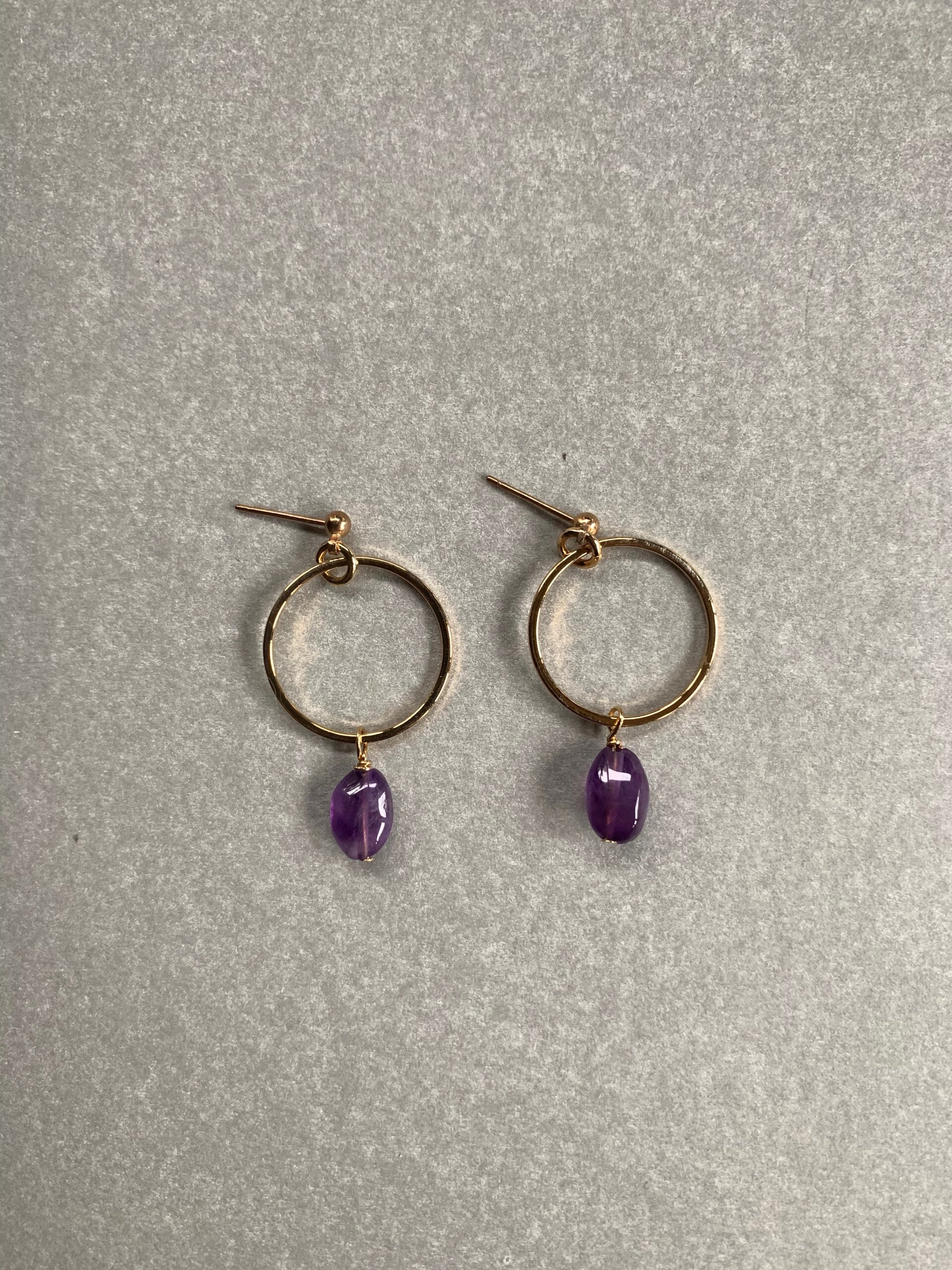 Lieve halflange goldplated oorbelletjes met een paarse Amethist