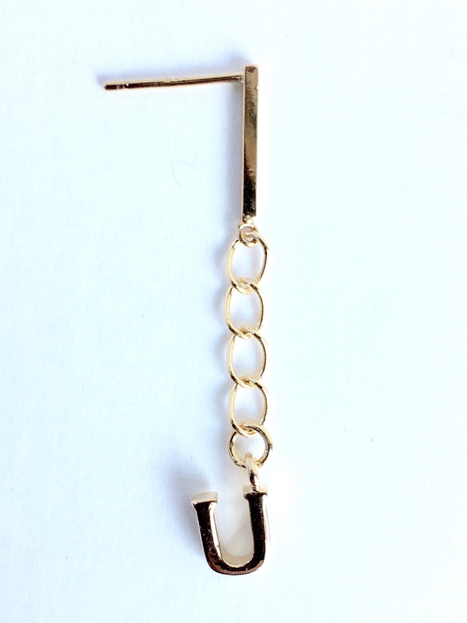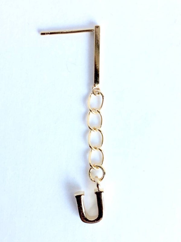 De letter U aan een kort goldplated kettinkje met een open schakel