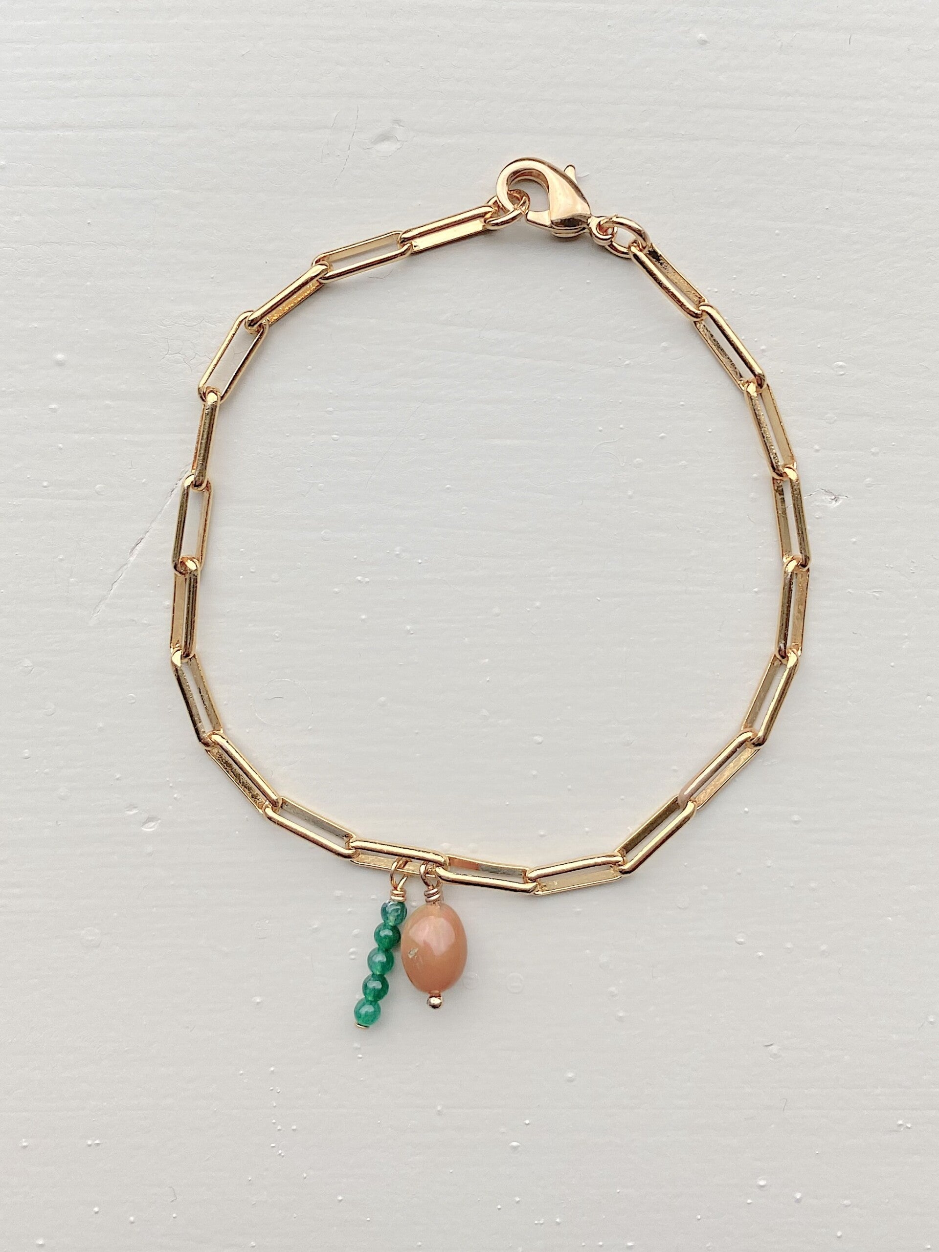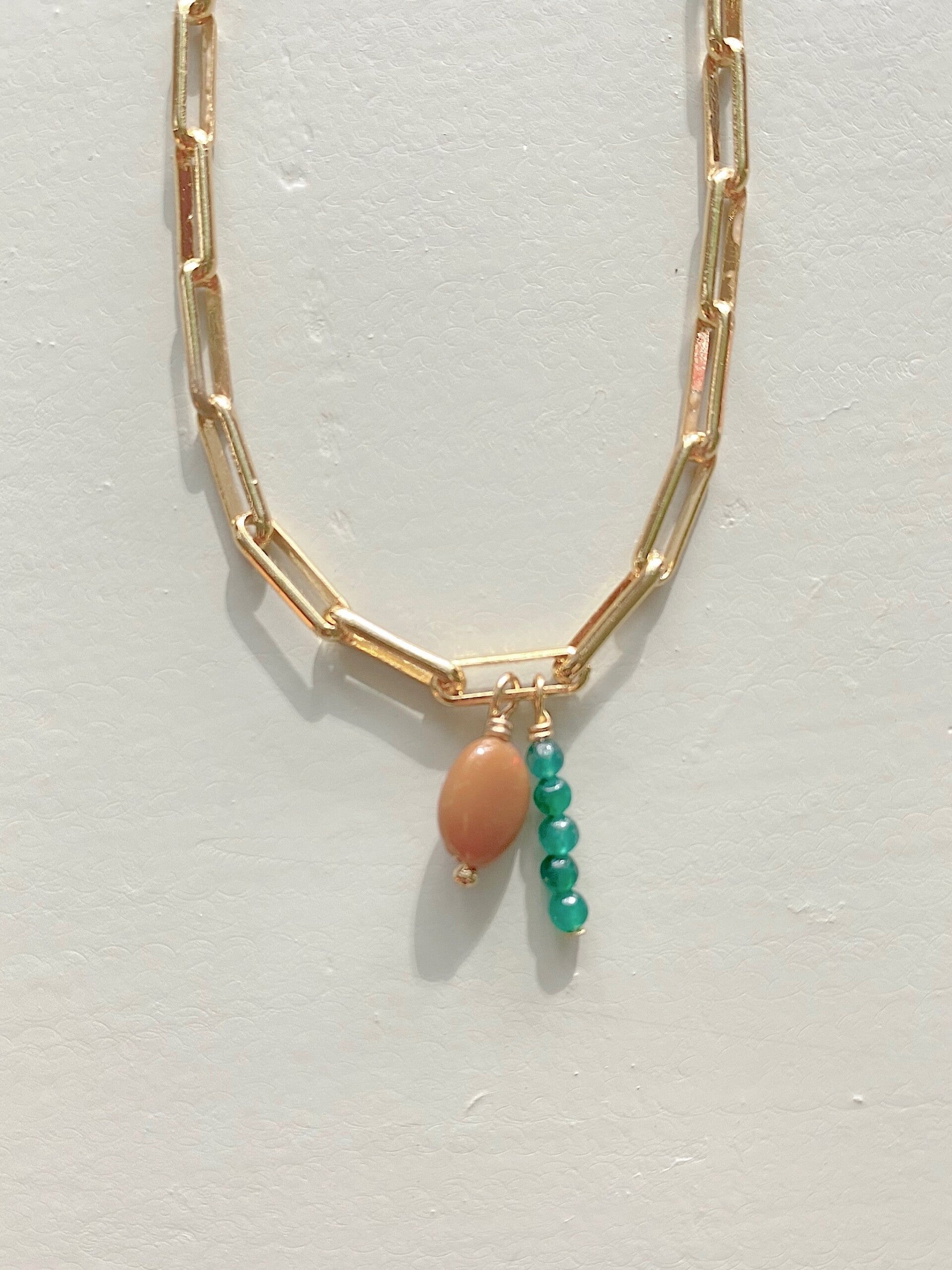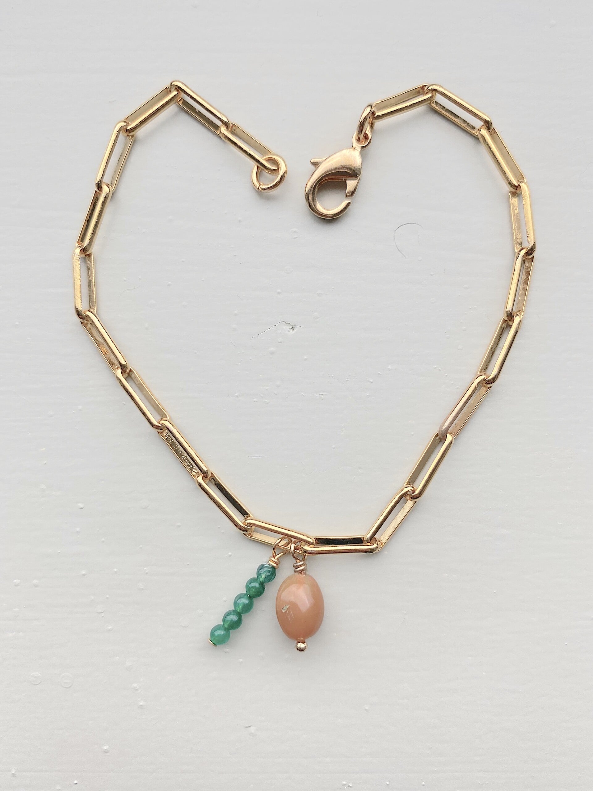 materiaal: goldplated findings. Stenen: Ethiopische Opaal en jade