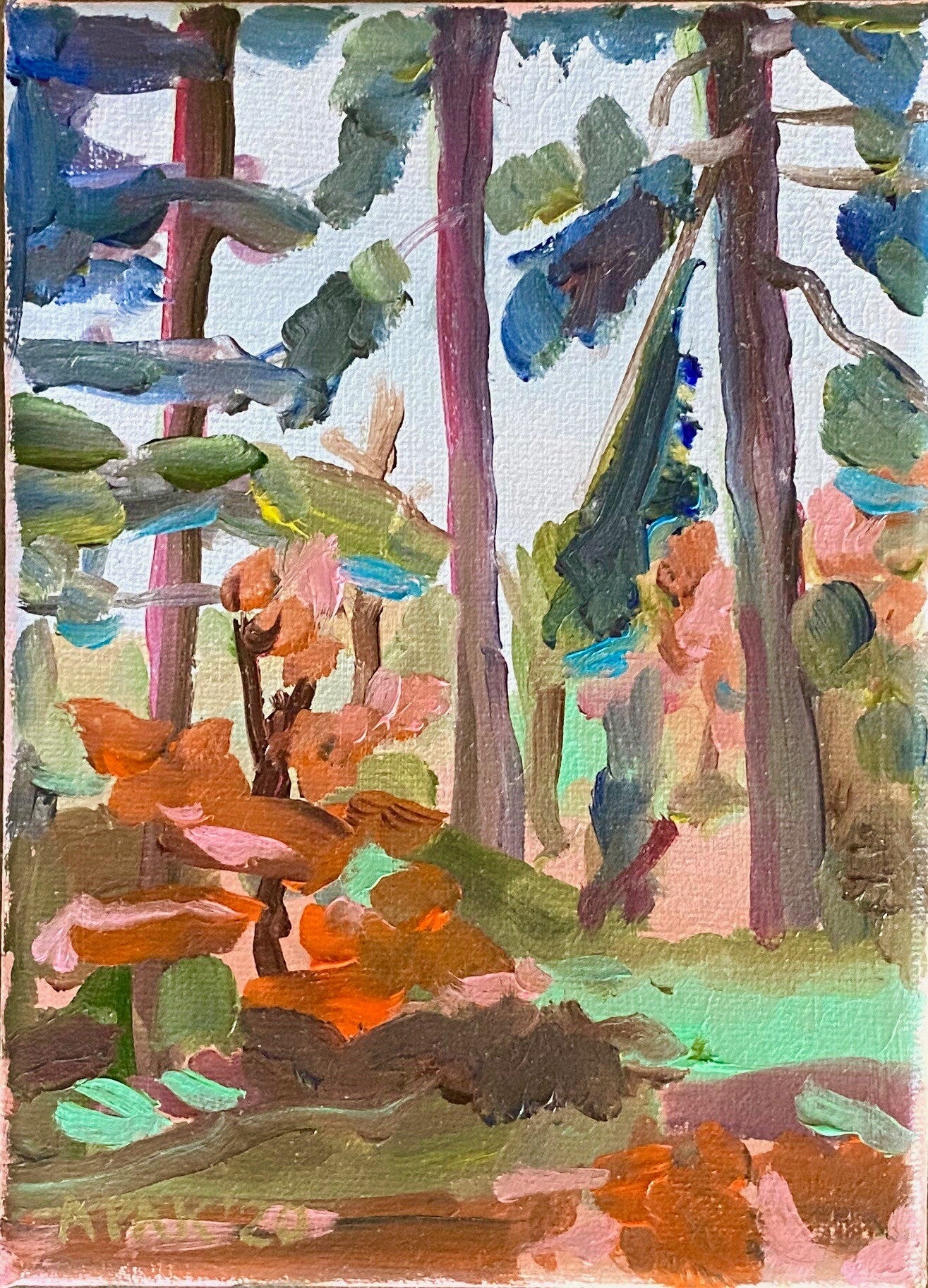 Drie boompjes - Het grote Bos in Driebergen / olieverf op canvas / 13x18cm / 2020
