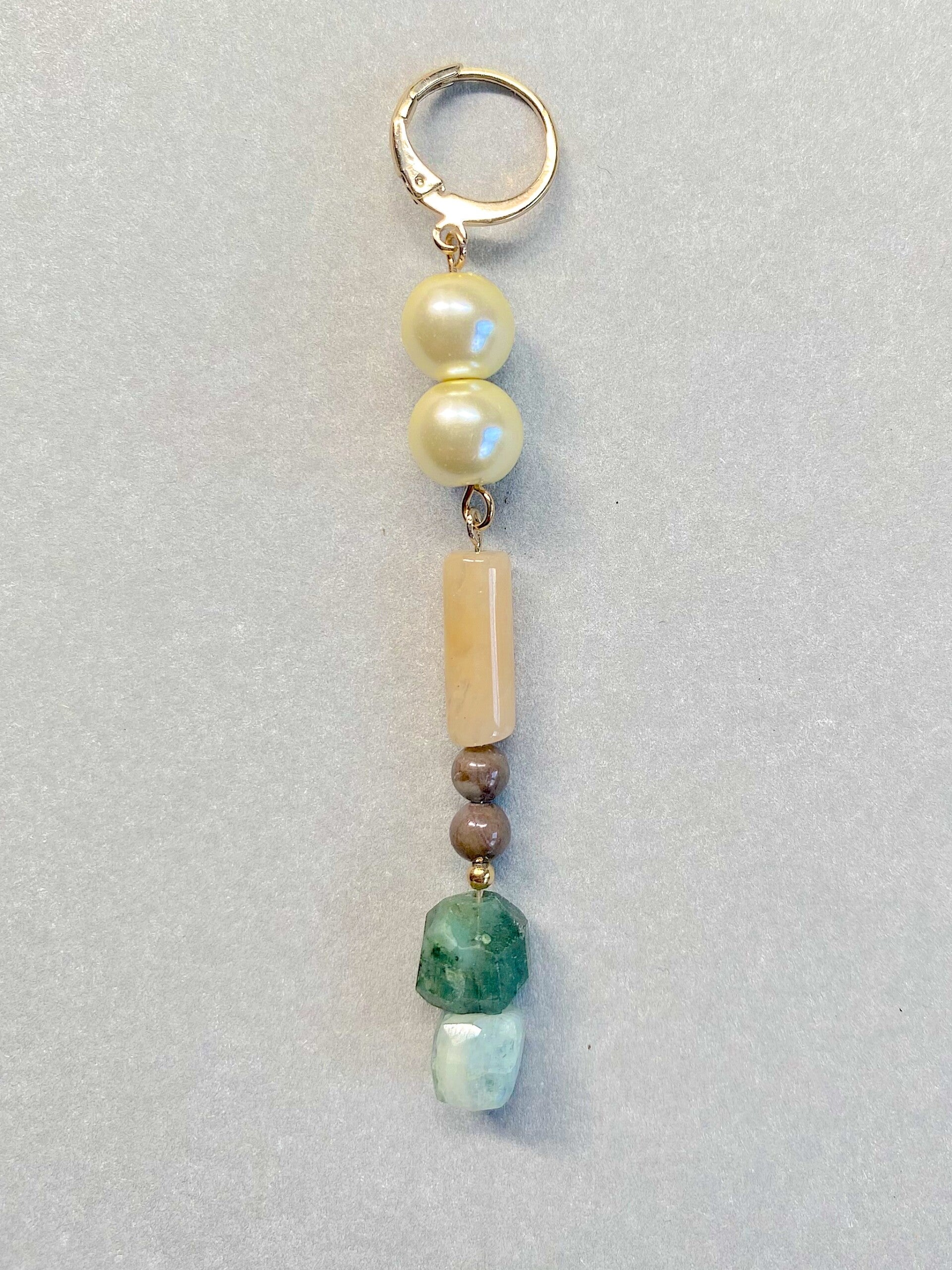 Lange Queenie oorbellen met vintage Parels, Rhodoniet, aventurijn, Amazoniet en roze Opaal