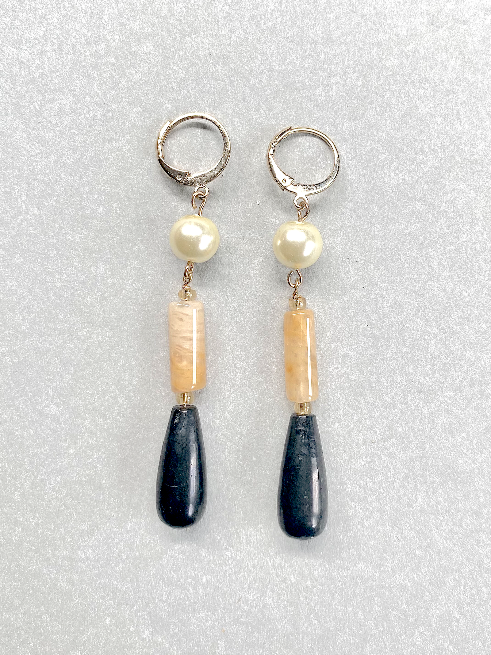 Lange Queenie oorbellen met vintage kleine Parel, aventurijn en Shungite