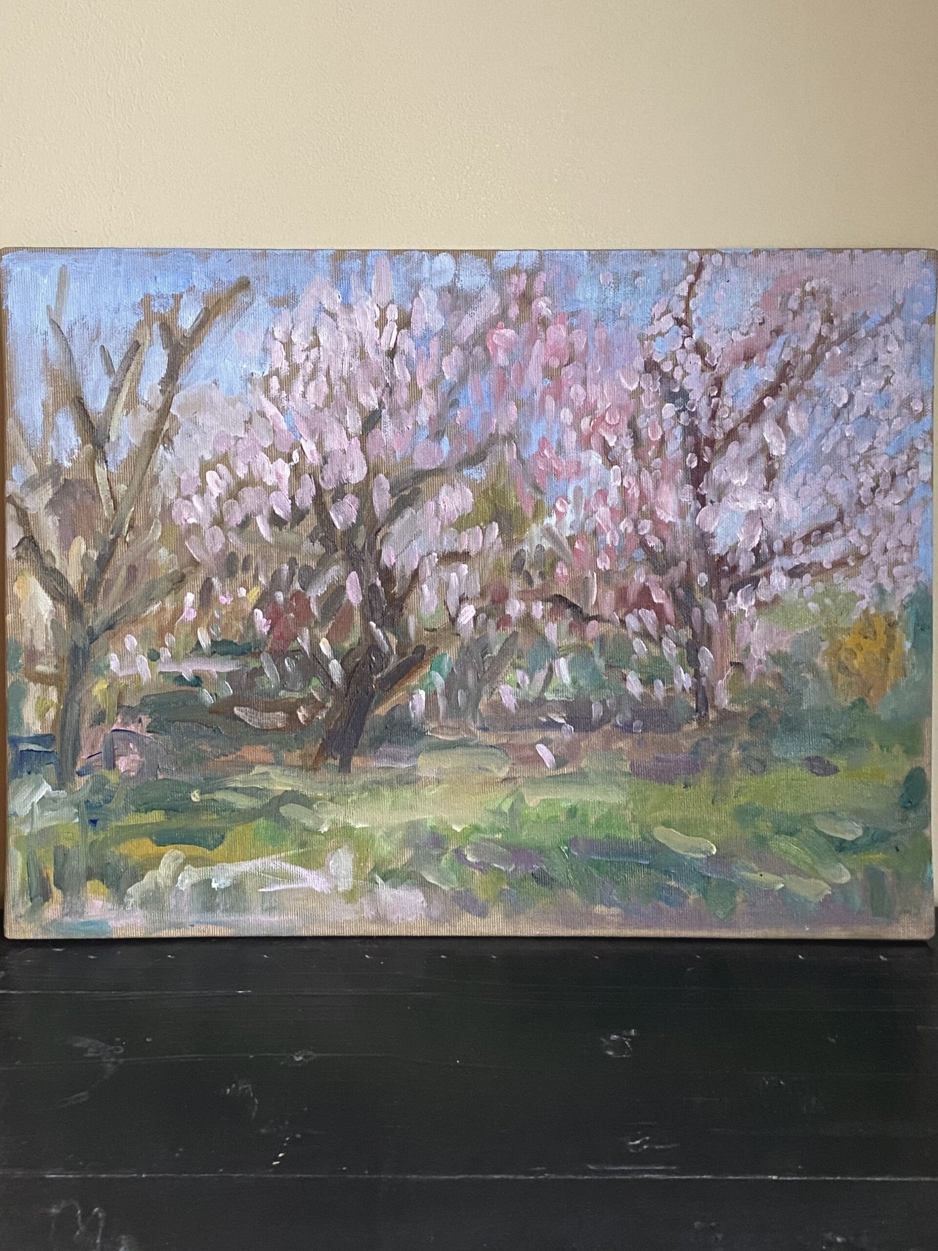 Magnolia en bloesem Wageningen / 24 x 30 cm / olieverf op linnen cardboard/ Maart 2022 Utrecht