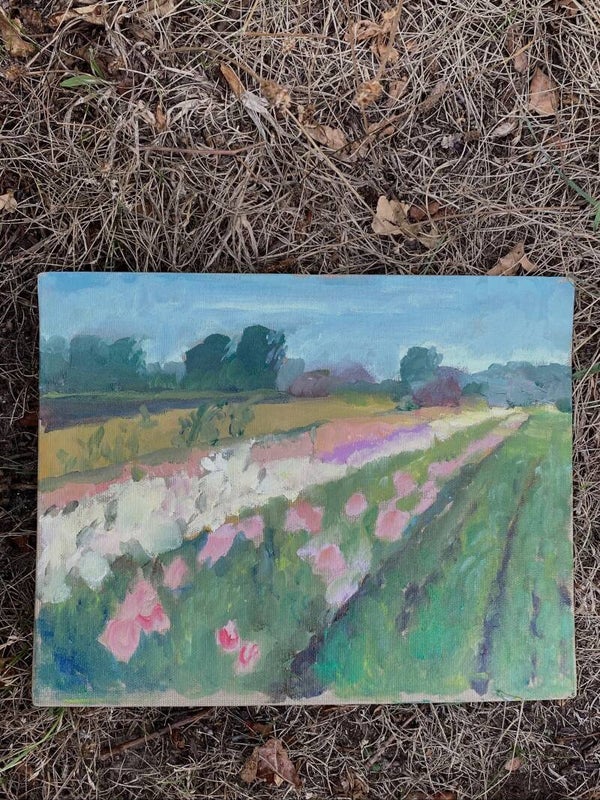 Lisse Dahlia's / 24 x 30 cm / olieverf op linnen cardboard / 2022 Lisse / Alette Pak